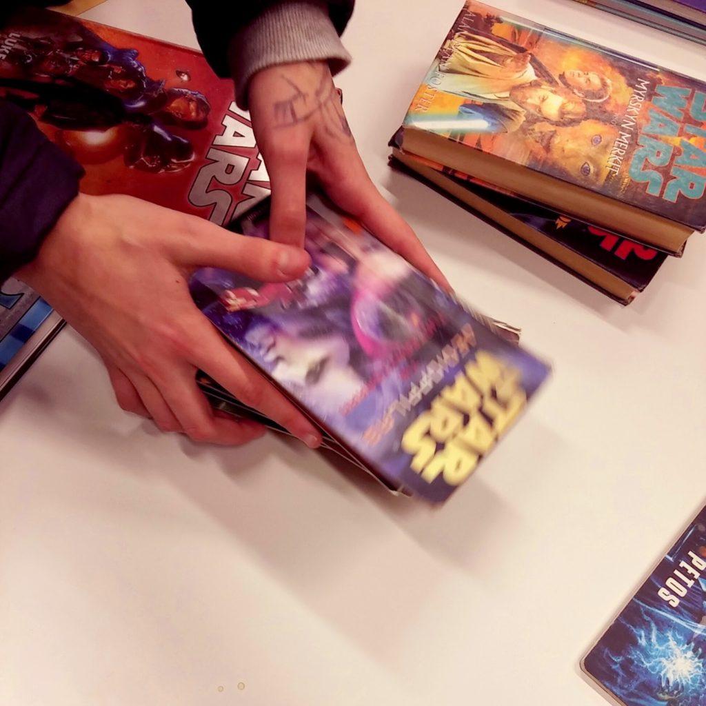 Kirjastossa kävikin sitten tuuria, kun löytyi kasoittain Star Wars kirjoja. |