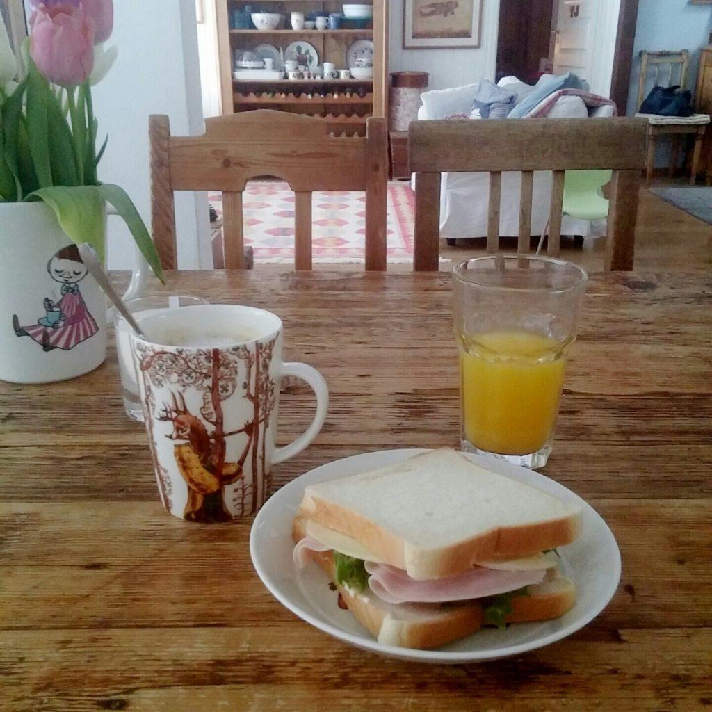 Voileipä lopulta löytyi lautaskaapista, enpä hoksannut sieltä ensimmäisenä etsiä. Yleensä lautanen otetaan kaapista ulos, eikä laiteta lautasta leipineen takaisin sisään. Samalla jäähtyi kahvi ja pehmeni Fittnessmurot, hyi olkoon miten vikkelään nekin kehtaa muuten pehmentyä. Hyvä kun ehdit lusikoida muroja loppuun, niin loppu on jo yhtä klimppihyhmärettä.