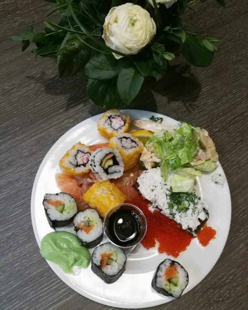 Syömässä ehdin käydä Buffetissa ja suuret peukut susheille ja erilaisille kala vaihtoehdoille. Kaikkinensa laivalla oli hurja määrä ihmisiä, mutta buffetin tarjoiluvadit eivät ehtineet tyhjentyä. 🙂