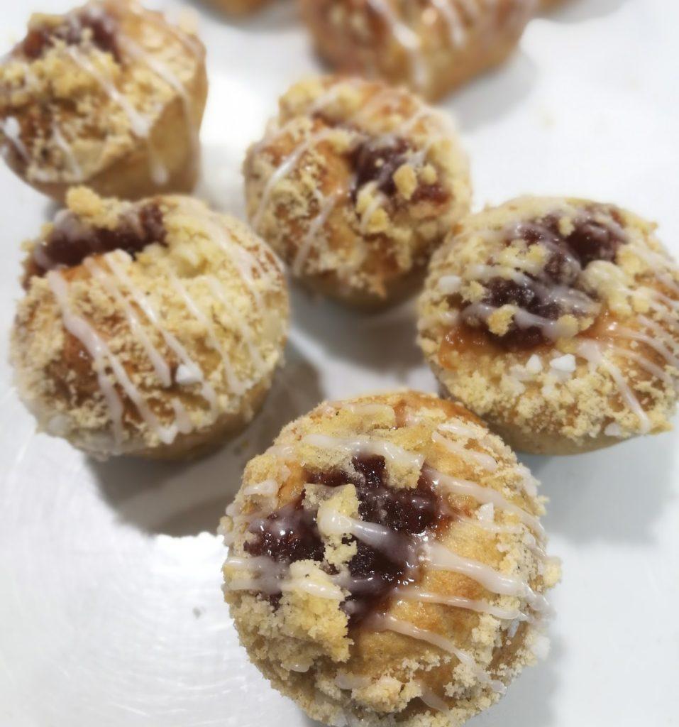 Kun pääsimme tuunaamaan herkullisen pullakasan joukosta omia pullia, en noudattanut lainkaan tuota yksinkertaisinta oppia: ”vähemmän on enemmän”, vaan sorruin taiteilemaan pullatäytteiden kanssa oikein urakalla. Vai mitä tuumaatte yllä olevan kuvan donitseista ja pullista, joissa täytteinä oli: sitruunarahkaa, erilaisia marjoja, kermavaahtoa, lemon curdia ja erilaisia herkullisia päällisiä ja strösseleitä. Pullia kiikutinkin mummilleni ja tädilleni pakkaseen ja vielä kotiinkin jäi muutama perheen herkuteltavaksi.