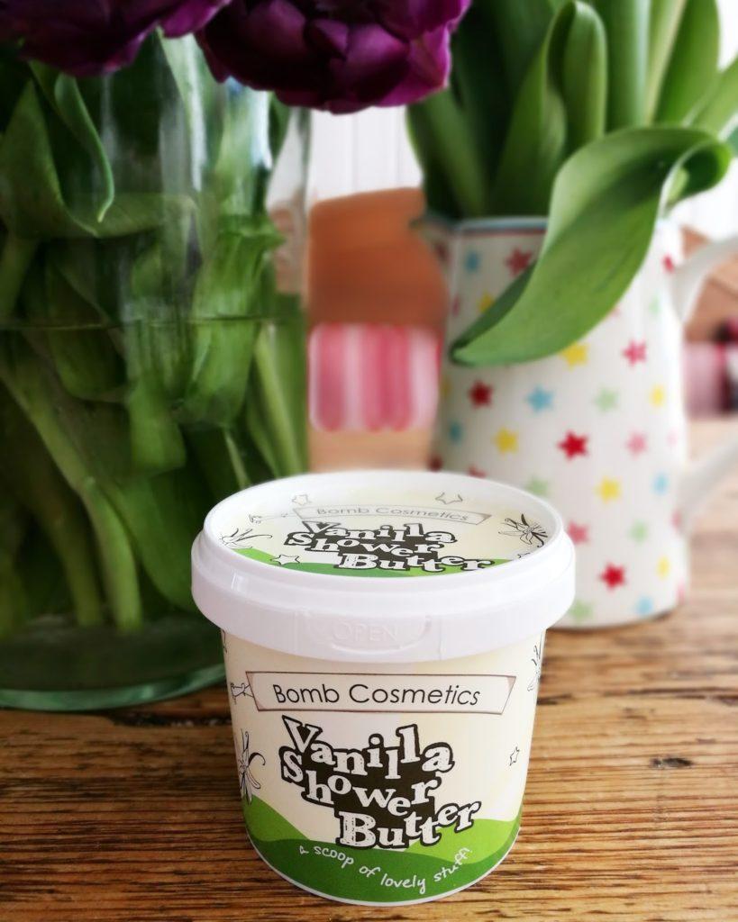 Entäs sitten Vanilla suihkuvoi. Kahmaiset tätä paksua ja kermaista suihkuvoita kämmenelle ja peset sillä kropan. Sheavoi kosteuttaa ja hoitaa ihoa. Huoneenlämmössä tuote on paksua ja kermaista. Omalla kohdalla aivan uusi ja mielenkiintoinen suihkutuote ja mikä tuoksu, vaniljassa hieman mukana karamellia.