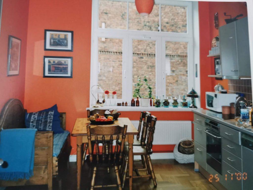 Kun muuttaa kotiin, jossa saa toteuttaa kaikki mahdolliset hurjimmatkin väritoiveet tietäen, ettei koti ole pysyvä, päätin Englannissa asuvan ystäväni kodin innoittamana, että meillekin tulee värikkäät huoneet. Keittiöön ja meidän makkariin oranssia, (makkarissa ei toiminut) ja muuten vaaleansinistä ja lasten huoneeseen keltaista. Vieläkin tykkään tästä oranssista keittiöstä vaikka monen silmään se on karmea. Oranssi ei seurannut kuitenkaan enää muihin koteihin, sillä kyllästymisen vaara oli niin suuri.