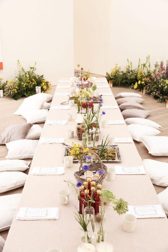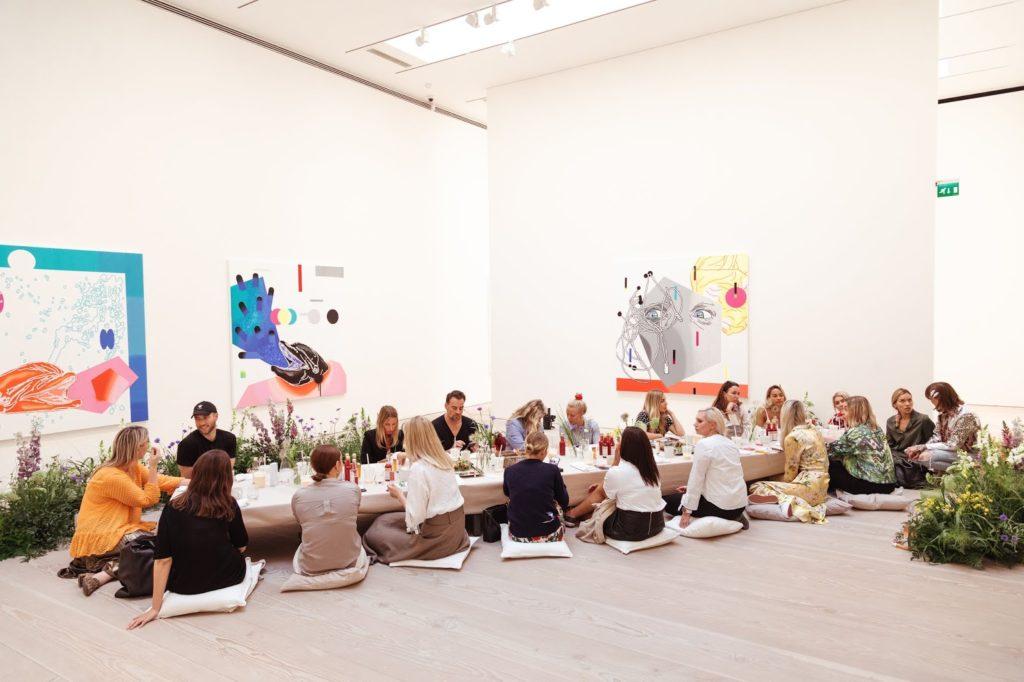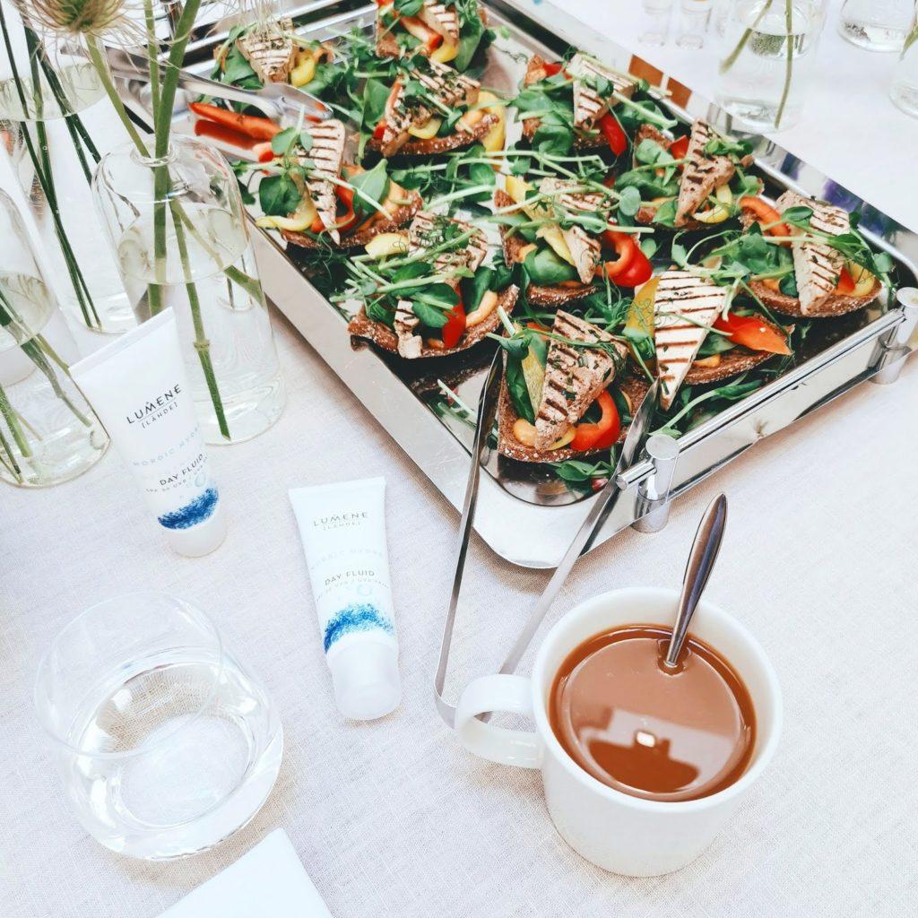 Galleria Forsblomin tiloissa, joissa oli samalla Tanya Akhametgalievan ”The Poisonous berries” näyttely, Lumene piti uutuustuotteiden tiimoilta kesäisen piknikin. Tilaisuus oli rento ja aivan ihastuttava. Lattialla tyynyillä istuminen vei turhan jäpityksen pois. Mukavaa seuraa, uutuuskosmetiikkaa ja herkullinen aamiainen, voisi sanoa, että aikalailla täydellinen piknik.