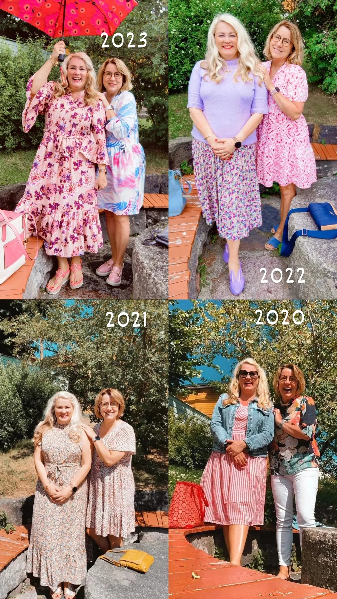Rakkaan lapsuudenystävän kanssa ollaan kuvattu vuodenaikakuvia vuodesta 2020. Ensimmäinen kuva syntyi vahingossa ja siitä se sitten lähti. Tovi mietittiin, että nyt kun asun Helsingissä, että voiko vuodenaikakuvaamista jatkaa, koska ollaan aina kuvattu samassa paikassa eli ns. ”meidän” paikassa kuvat monen vuoden ja vuodenajan ajan.