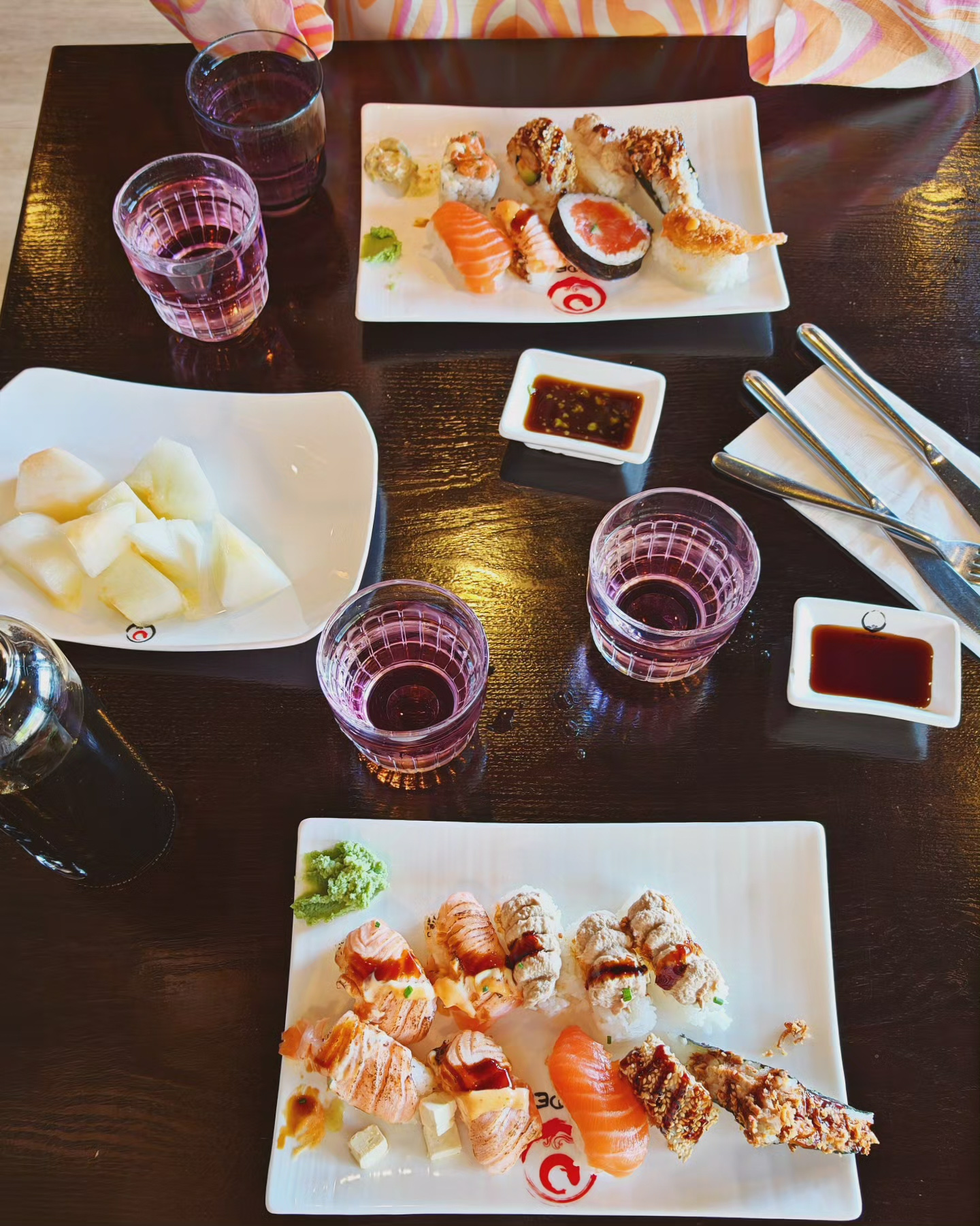 Mitä tekee yli viiskymppiset lapsuudenystävät. Käy tietty apteekissa ja nuorella farmaseutilla oli naurussa pitelemistä, kun sekoiltiin mitä troppeja tarvitaan. Sushilla, jonne unohdin aurinkolasit, koska pöytä oli niin tumma. Etsittiin Pätkis-jädepuikkoa, koska se on ystävän mukaan niin hyvää, ei löytynyt mistään.