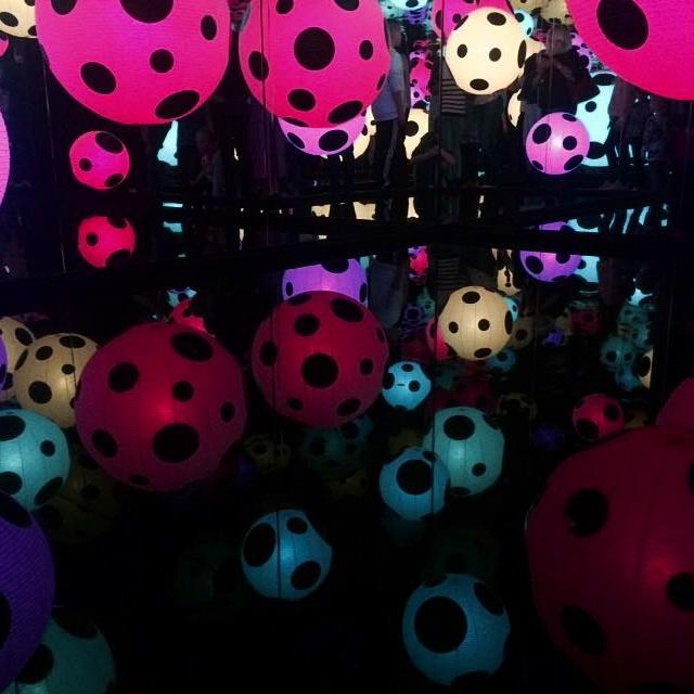Moderna Museet Tukholmassa on 11.9 asti Yayoi Kusaman japanilaistaiteilijan näyttely, jos piipahdat siihen mennessä Tukholmassa. Näyttely on myös tulossa Helsingin taidemuseoon 7.10.2016. Kusamaa on verrattu naispuoliseksi Andy Warholiksi ja pilkkujen kuningattareksi. Kusaman pilkkuinstallaatio ”Oodi elämälle” oli todella vaikuttava elämys, joka olisi varmasti jokaiselle mielenkiintoista kokea itse. Installaatio värikkäine palloineen ja peilihuoneineen teki suuren vaikutuksen myös lapsiin. Lattiakin oli lasia, jonka alla oli vettä.