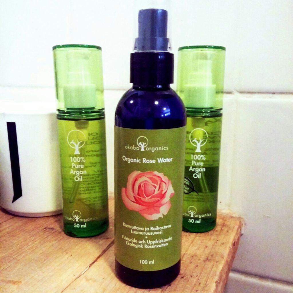Arvonnassa upeaa luonnonkosmetiikkaa Okabo Organicsilta, puhtaita arganöljyjä ja ruususuihke!