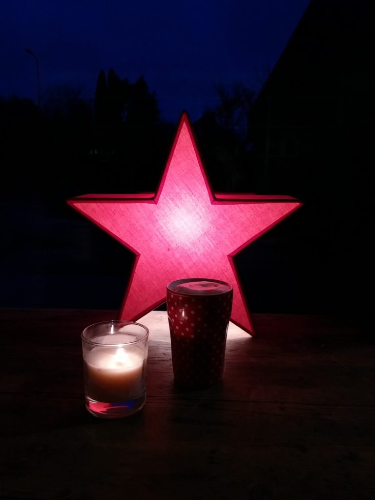 Kynttilöiden tuiketta ja säihkettä, kirjoja, herkkujakin kohtuudella, kissan kehräyksen lämpöä, kuumia juomia ja kylpyhetkien lämpöä.